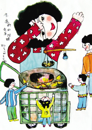 《漂亮的卖红薯阿姨》 戈小双,男,6岁半,2000年获日本第30届世界儿童画展金牌