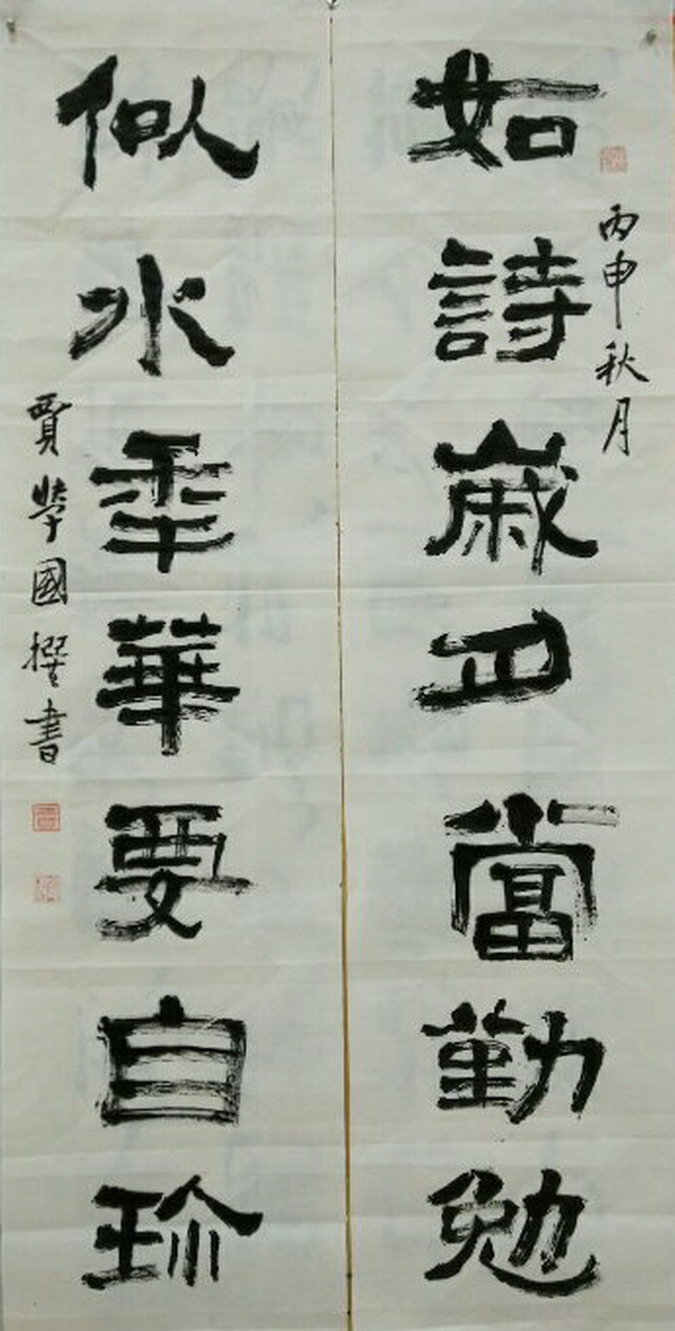 2015年对联书法作品参加由全国总工会、外交部、中国人民解放军总参等联合举办的《纪念中国人民抗日战争胜利七十周年全国诗词书画摄影作品大赛》荣获银奖;由中宣部、江苏省委宣传部、南京市委宣传部联合举办的《纪念抗日战争胜利七十周年楹联大奖赛获奖作品》指名书写的5副作品,在南京展出后分别赠给中国人民抗日战争纪念馆、南京大屠杀遇难同胞纪念馆等五处珍藏。