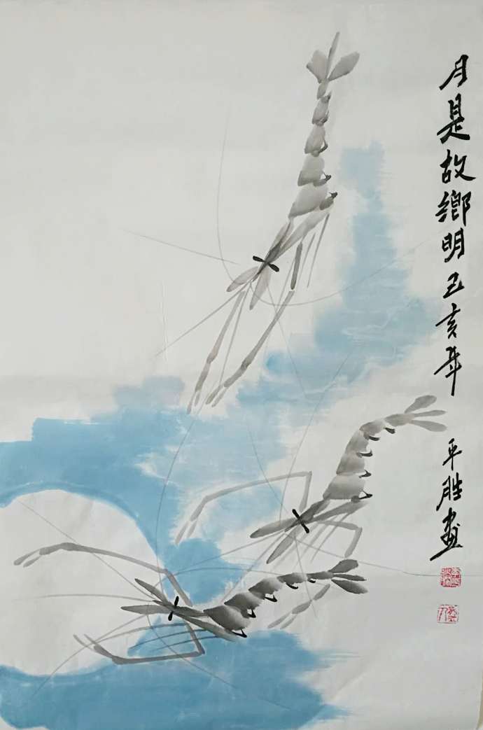 李平胜善画竹子、虾、荷、梅、葡萄、钟馗,尤精青绿山水画,其青绿山水画从传统入手,初取法于“四王”,又博采国内当代各地及各派众家所长,独立世人面目。李平胜山水画,布局饱满,用笔严谨,他以独创的“荷叶皴”描摹山之肌理,构成特技效果,缩景物前后的距离,强化山峦的形式感,增加画面的视觉张力。从而画作整体更加聚拢,结实,气势充溢仿佛把景观自画内向画外推出,与古人山水画的所谓淡远,萧疏之风迥然不同。李平胜山水以山石为主,辅以山林。溪流飞瀑挂于峭壁;深潭静水藏于峡谷;闲云薄雾游荡于峰峦之间;茅屋草舍映掩于茂林之下。画家在荒野的深山幽谷中,营造了一处处世外桃源,确实令人心神向往。他用色力求淡雅。多用诸石,伴以花青或叶绿相辅,生出些精灵变化。用色淡雅,既避免艳俗,火爆气之嫌又衬托出笔墨的情趣,可见出平胜的笔墨功力,且使画作 古意盎然,与画境相携。平胜山水画以对大自然的独到见解,树立自己“清秀淡雅、雅俗共赏”的画风,作画尤精墨法,在水墨之中略施淡,以饱满的热情和大自然独特感悟绘出山川大河的清秀神韵。