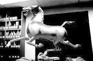 2002年,江泽民将一尊原大仿制24K镀金青铜仿制品“马踏飞燕”,赠与美国总统乔治·沃克·布什。资料图片