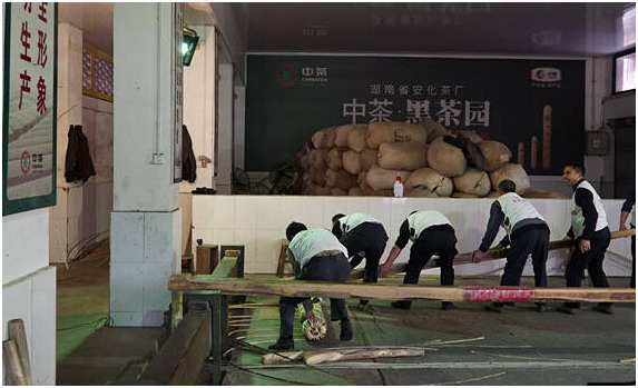 观摩茶品的制作,是此行的句点。摄制组早闻【中茶黑茶园】产品制作工艺繁复,便用镜头记录下全程。其中以茯砖茶、千两茶两项非物质文化遗产工艺最为引人入胜。