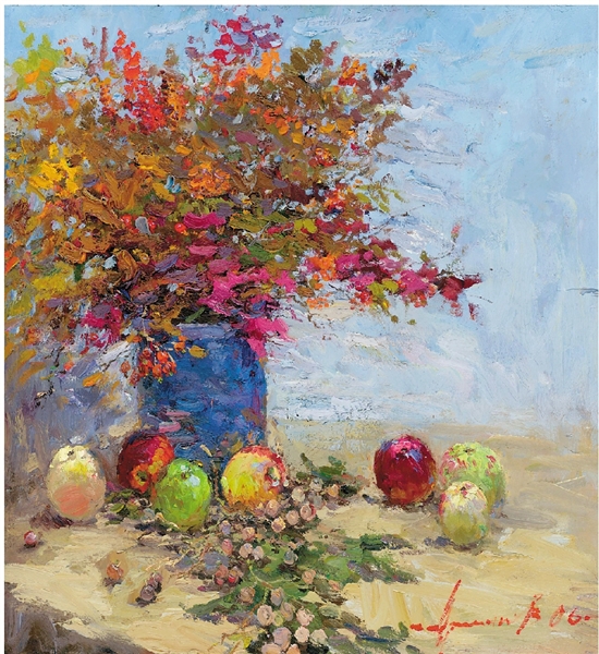 拉申得 克里姆斯特的秋花束90×90cm 布面油画 2006年